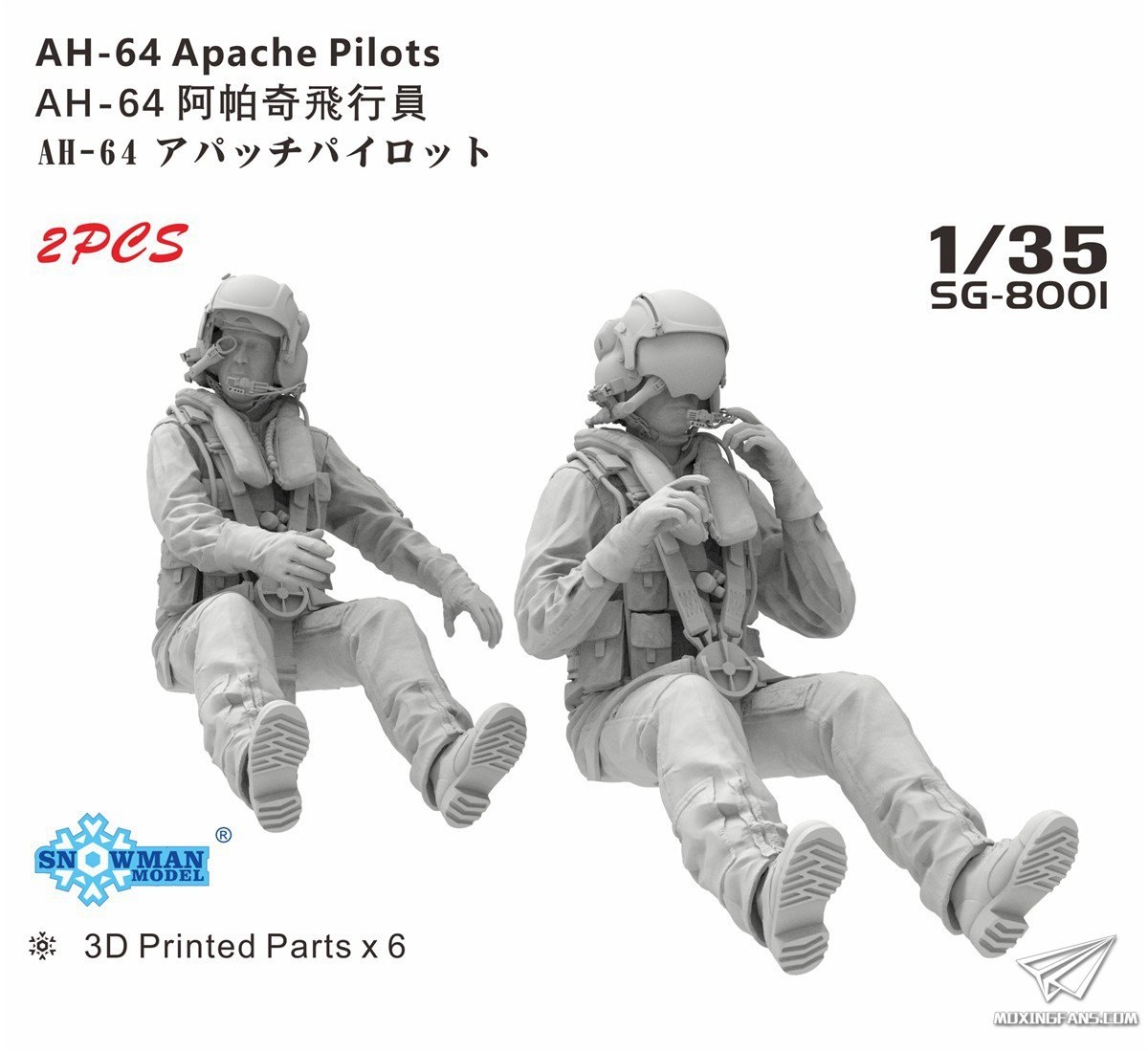 Snowman Model из Китая выпускает на 3D-принтере фигуры пилотов для модели вертолета AH-64 Apache в масштабе 1/35: AH-64 Apache pilots (каталожный номер SG-8001)