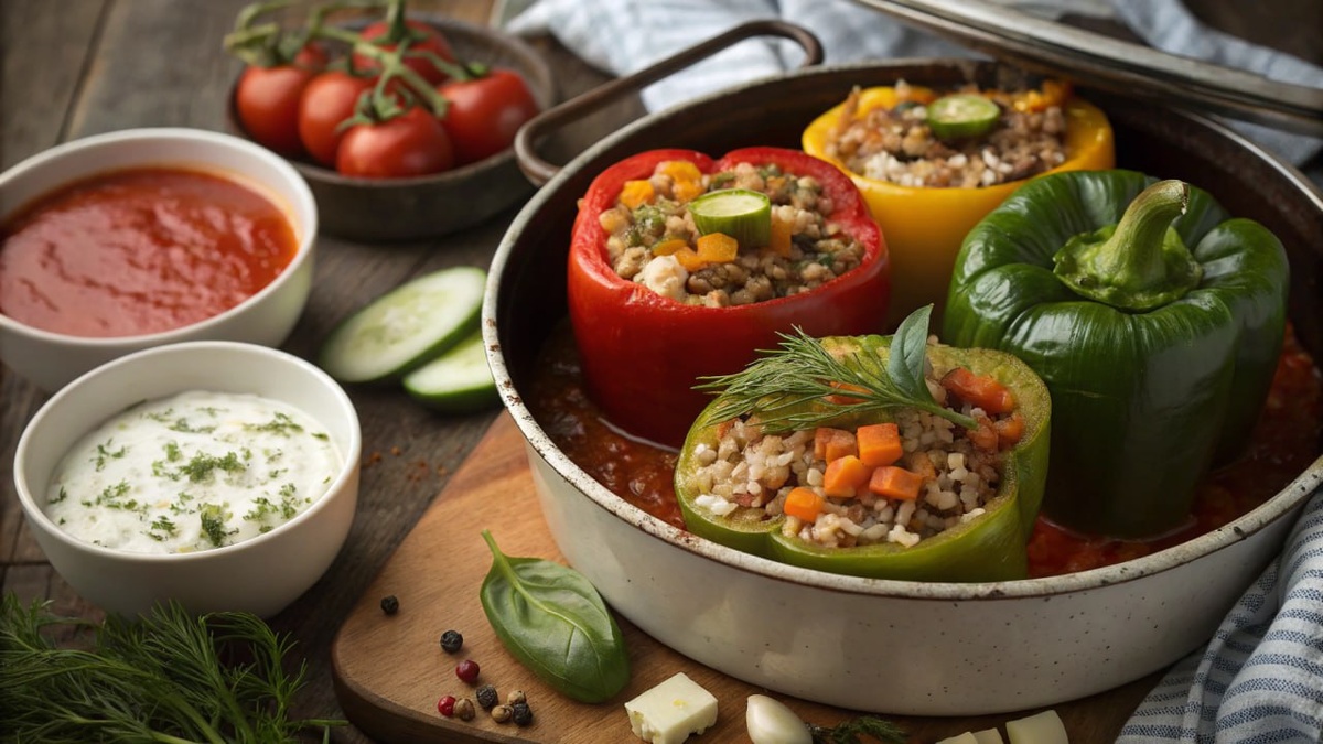 🌶 Фаршированные перцы с рисогречкой и ароматным соусом