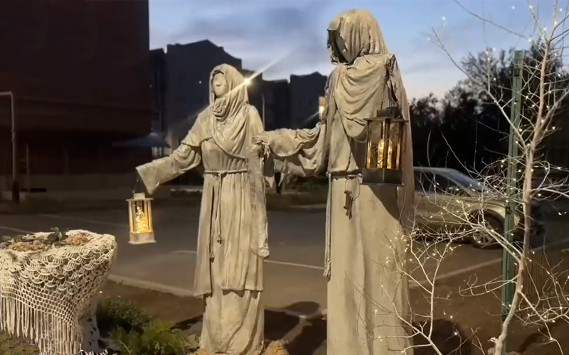 Ранее в социальных сетях появились фото и видео с фигурами в капюшонах, расположившимися в одном из дворов в Шахтах. Комментаторы разделились во мнениях: красиво или пугающе выглядит такой декор. Местные жители решили необычно украсить цветочную клумбу, установив неординарную скульптурную композицию. Мнение шахтинцев в социальных сетях разделилось. Некоторые сочли фигуры пугающими, а кто-то считает, что скульптуры путника и молодой девушки стали украшением двора. Украшением двора занимается председатель совета собственников дома Людмила Алексеенко. Как рассказала женщина, идею установки скульптур она обсудила с соседями, и большинство жителей её поддержало. Местные определили, что фигура путника станет хранителем многоэтажки, а также решили, что ему нужна спутница, так появилась скульптура молодой девушки. Первоначально фигуры напугали местных жителей, но подручными материалами они сделали композицию более уютной. В ход пошли старая раковина, шаль, уличный фонарь, лейка. Соседи дружно