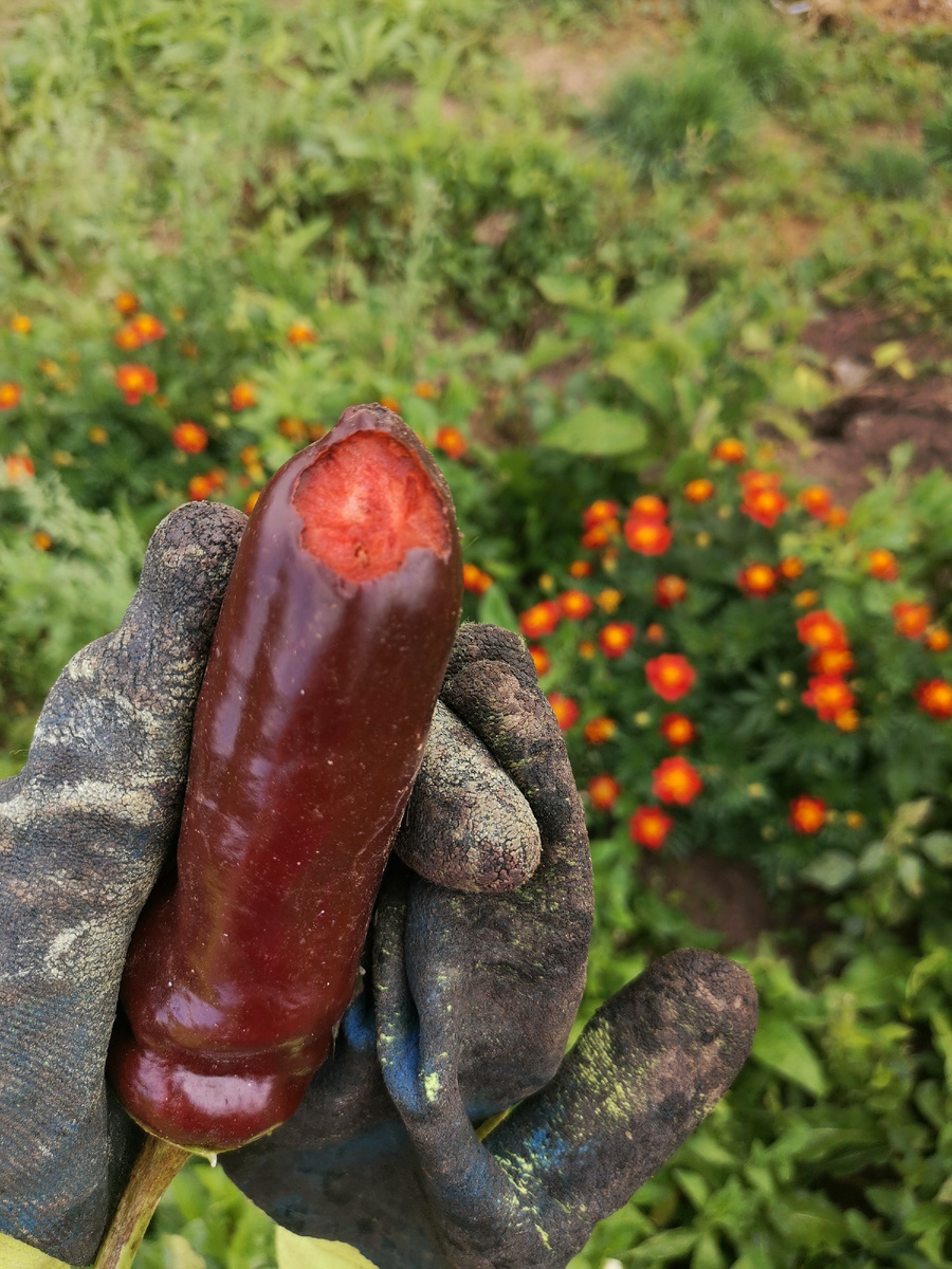 Помните «Ералаш» «Что в коробке, то и на коробке?» Меня всегда очень смешила эта серия, сложно объяснить причину, просто странный факт из моей биографии. Что-то мне снова не хочется вести дневниковые записи. Ну вы по рецептам и обзорам сортов, думаю, это поняли. Вот поэтому из меня блогер-то и не получился, потому что человек настроения (или вдохновения?). Ладно, лирику в сторону, поехали по перцу. Минутка негодования. Какая-то тварь Божья жрёт мой перец. Приятного аппетита, конечно, но я на это не подписывалась. Надо выяснять. На участке поселился кот (кошка) снежно белого цвета, спит в картошке, виделись уже дважды. Наверное, каких-то мышей сторожит, которые мой перец едят. У нас карбышей полно, хомяк так называется. Много не сожрал, но раздражает это дело. Ладно, вернёмся к нашим перцам, которые идеально совпали с картинкой. Воооот, это 100% перец Союз от Партнёра, а значит мы его точно ставим на бесконечный повтор из года в год. Я влюблена в него по самую макушку. На сколько он