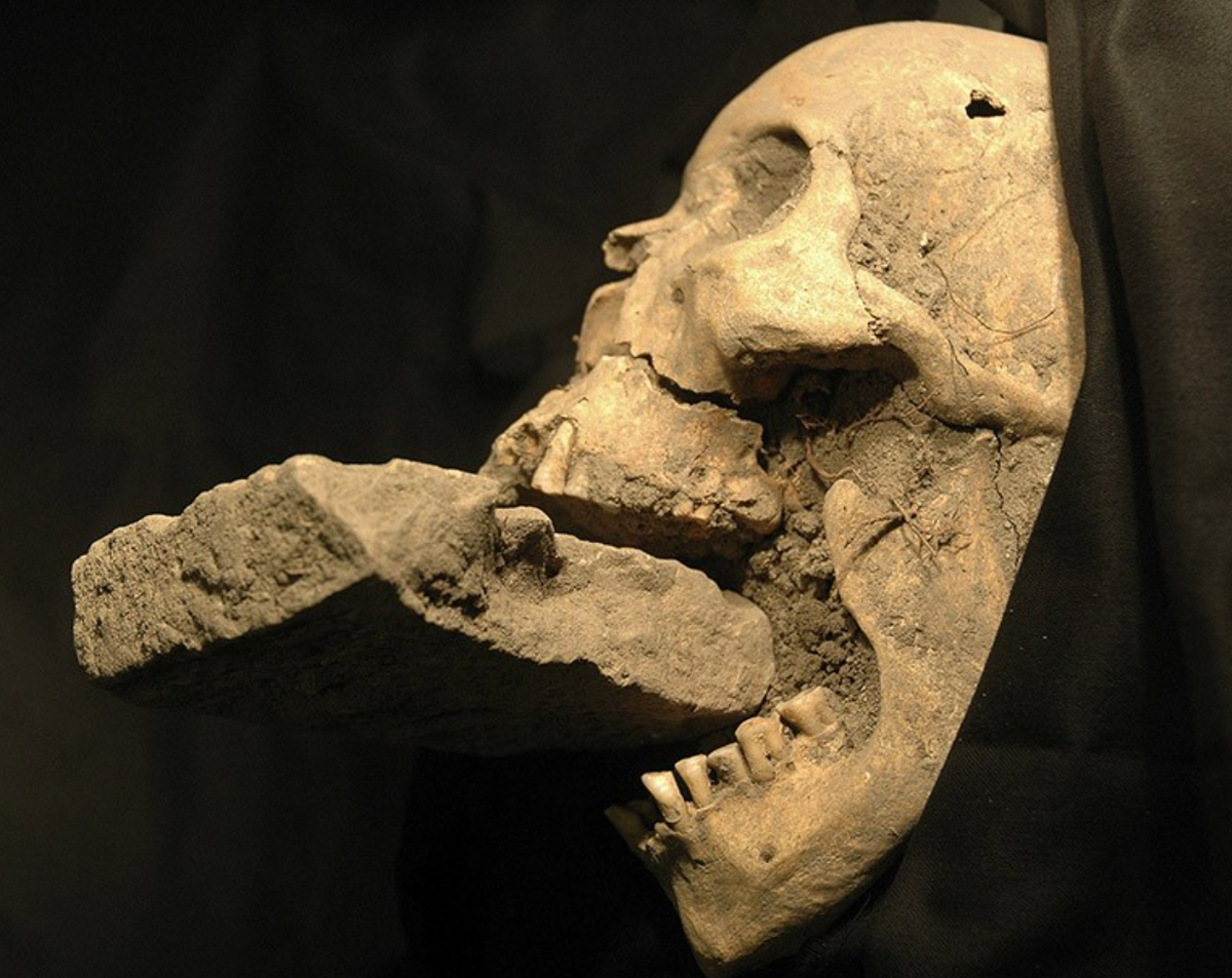 Археология - это не только пыльные черепки и древние монеты. Иногда ученые откапывают такое, что заставляет усомниться в человечности наших предков. Массовые захоронения детей, изощренные методы убийства, загадочные ритуалы - все это ждало своего часа под землей. И дождалось. Друзья! Чтобы оставаться в курсе выхода новых статей на канале, вы можете подписаться на наш телеграм канал. А помимо анонсов статей, там будет уникальный и интересный материал, которого нет на дзене. Присоединяйтесь!" Представьте: раскопки массового захоронения под Венецией. Среди обычных скелетов археологи находят череп с... кирпичом во рту. Не просто рядом лежащим - именно засунутым между челюстями. Оказывается, в средневековой Европе так "обезвреживали" вампиров. Логика железная: вампир пьет кровь ртом, значит, забьем рот кирпичом - проблема решена! Сегодня мы знаем про осиновые колья, но наши предки были изобретательнее. Находка доказывает: вера в вампиров была настолько сильной, что люди принимали реальные м