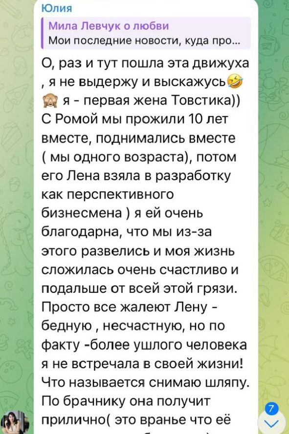 Первая жена любовника Полины Дибровой на связи. Рассказала, как нынешняя жена уводила его из семьи и как дети ее ненавидят. А еще про вранье и крокодильи слезы на публику. Оказывается, дамочка с 17 лет окучивала Товстика. Но бумеранг никто не отменял 🪃 Муж ее бросил. Но по договору даст кучу денег. Не благодарите. Спасибо-пожалуйста