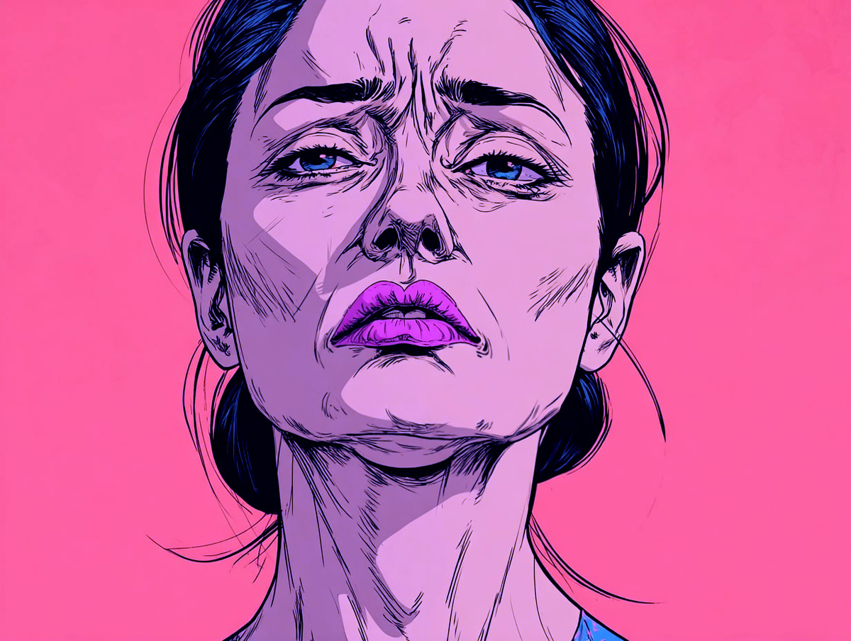 - Усугубляются мышечные зажимы. Еще один внутренний фактор риска — зажимы мимических мышц лица. На фоне менопаузы наша чувствительность к стрессу растет: при дефиците эстрогенов ключевой «гормон стресса» кортизол выделяется более активно и дольше влияет на организм. А при стрессе и негативных эмоциях наши лицевые мышцы спазмируются. При этом они сжимаются, укорачиваются и тянутся к своему основанию — чаще вниз, увлекая за собой кожу. В результате мышечные зажимы блокируют кровоток и лимфоток, а еще — провоцируют морщины и заломы на коже, опущение мягких тканей лица (тот самый «поплывший овал»).