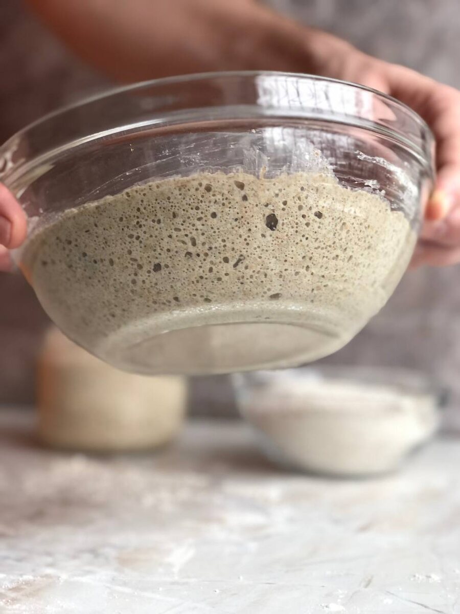 Продолжу про кислотность заквасок Что влияет на кислотность? - Температура: При +25-28°C закваска киснет быстрее, при +18-22°C - медленнее, но сбалансированнее. - Частота подкормок: Редкие подкормки повышают кислотность. - Соотношение муки и воды: Жидкие закваски (1:2) менее кислые, чем густые (1:1). Как скорректировать кислотность? - Снизить кислотность: Чаще подкармливать свежей мукой и водой (каждые 8-12 часов). - Повысить кислотность: Дать закваске перестоять (12+ часов), добавить ржаную муку грубого помола. Важно! Для ржаного хлеба нужна именно кислая закваска (pH <4.3) - это улучшает эластичность мякиша и подавляет патогенную микрофлору. Для пшеничного хлеба кислотность можно снижать.