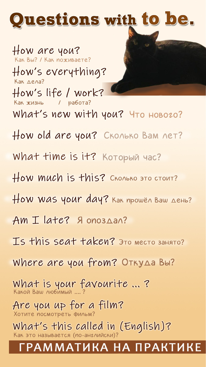 Иногда в вопросах нет глагола (Сколько Вам лет? Откуда Вы?). Тогда нужно использовать глагол-связку - to be, который, в зависимости от времени, превращается в am, is, are, was, were, have been, has been или will be. Вот примеры самых распространённых вопросов. Более подробно о глаголе to be - в этом видео: https://dzen.ru/video/watch/660e9b3fd45a53675bf07e12