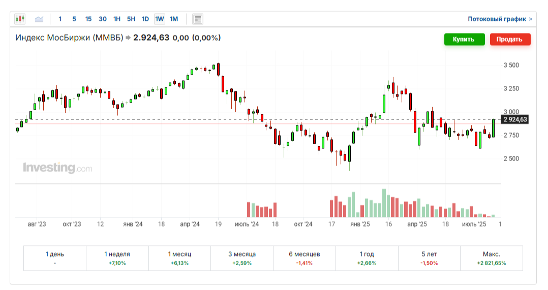 От 2730, с которых началась неделя, рынок вырос по индексу где-то в район 2950, приблизившись к значимой "психологической отметке" 3000. В последний раз на таком уровне индекс был в апреле. Смотрим на график.