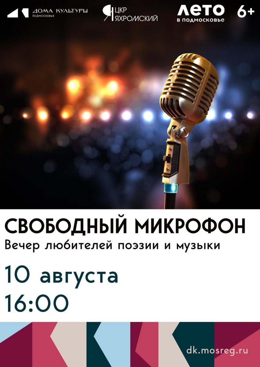 Центр культурного развития «Яхромский»приглашает вас на музыкально-поэтический вечер «Свободный микрофон»🎤