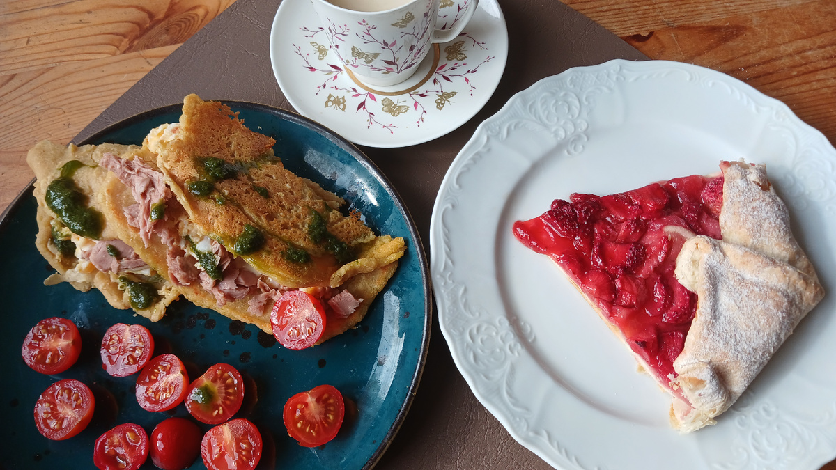 В августе тратим на питание одного человека 272 руб в день. Рассказываю, чем и как можно питаться на такую сумму. 😊 на завтрак у меня нутовые блинчики. Начинка в них - скрэмбл и тунец. Добавила для сочности каплю майонеза и несколько капель соуса песто. Конечно, чашечка эспрессо с куском клубничной галеты на слоеном тесте Клубничные пироги - это вообще нечто особенное 👌 После завтрака ездила в магазин Вимм-Билль-Данн закупаться молочными продуктами, потом на рынок за овощами, фруктами и ягодами. Поэтому заранее достала себе на обед хариссу - у меня была порция замороженного блюда в морозилке. На обед разогрела и добавила сладкий ростовский помидор 😊 А на десерт разгулялась 😄 - тут и кофе с клубничной галетой, и клубника, и нектарины 😇 на ужин съела творожок с ягодами и нектарин. Не ем обычно фрукты вечером, но тут уж так хотелось 😇 Меню год назад Экономное питание. 8 августа. Готовлю 3 блюда на 2 дня за 1,5 часа