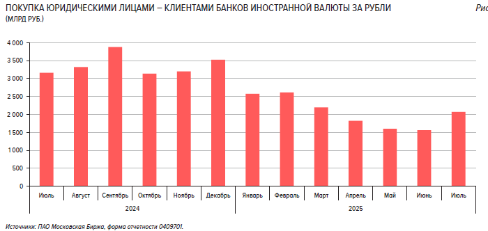Ослабление рубля произошло на фоне роста спроса на валюту со стороны нефинансовых компаний — клиентов банков в конце июля и общего укрепления доллара США. Об этом говорится в опубликованном ЦБ в пятницу «Обзоре рисков финансовых рынков». Источник: Банк России В июле рубль подешевел впервые с начала года, потеряв против доллара и юаня 4,3% и 3,9% соответственно. В пятницу Банк России опубликовал «Обзор рисков финансовых рынков», в котором объясняет данный факт ростом спроса на иностранную валюту со стороны нефинансовых компаний — клиентов банков, а также общим укрепление американского доллара (индекс DXY). «На протяжении большей части месяца спрос на валюту со стороны юридических лиц — клиентов банков оставался в пределах значений предыдущего месяца. Однако в конце июля произошел всплеск спроса на валюту со стороны нефинансовых компаний, что могло способствовать ослаблению рубля», — говорится в обзоре. — «В последующие дни объем спроса стабилизировался на среднем уровне месяца. В целом