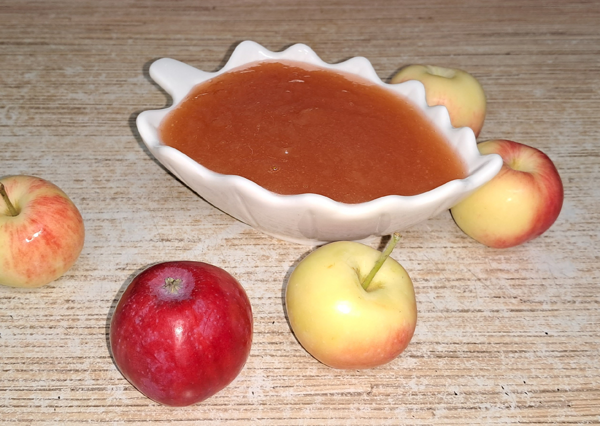 Домашние кисло-сладкие яблочки очистить от серцевинки и нарезать кусочками. Помыть и переложить в кастрюлю. На 1 кг яблок берём 600 гр сахара. Если яблоки сладкие, то можно 500 грамм сахара. Включаем плиту на средний огонь и периодически помешивая, ждём когда закипит. Яблочки закипели. Снижаем огонь на чуть меньше среднего. И тушим в течении 60 минут. Не забывайте помешивать! Через час. Выключаем плиту и даём нашим яблочкам остыть где-то около часа. Затем берём блендер и пробиваем всё в однородное состояние. У меня не вовремя сломался блендер, поэтому пришлось разминать "толкушкой". Конечно получилось ни так однородно, но тоже хорошо). Переливаем в стерилизованные баночки, закатываем крышками. Переворачиваем крышками в низ и оставляем остывать. Храним в прохладном месте. Остывший джем можно сразу намазать на хлебушек или испечь с ним ватрушки. Всем приятного аппетита ❤️