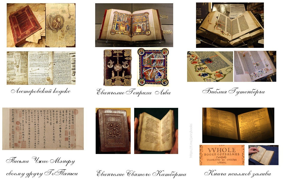Некоторые из самых дорогих книг мира, проданных на аукционах: «Лестерский кодекс». Считается самой дорогой книгой. 💰$30,8 млн (приобретён Биллом Гейтсом в 1994 году). С учетом инфляции - $65,3 млн 📜 Уникальная рукопись Леонардо да Винчи, демонстрирующая его взгляды на астрономию, движение воды и научные явления. Написана его знаменитым зеркальным шрифтом. Конституция Соединенных Штатов (первое издание) 💰$43,2 млн. (аукцион 2021 г.) 📜 Первое издание Конституции Соединённых Штатов Америки Ранее принадлежала С. Говарду Голдману. Письма Чжао Мэнфу своему другу Го Тяньси 💰$38,2 млн. (аукцион 2019 г.) 📜 Чжао Мэнфу был известным художником и учёным в Китае времён династии Юань, оказавшим большое влияние на китайское искусство. Евангелие Генриха Льва 💰 $11,7 млн (аукцион 1983 года). Сегодня сумма эквивалентна $38 млн. 📜 Рукопись, созданная по заказу Генриха Льва, герцога Саксонского, в XII веке. Богато украшена иллюстрациями и изысканным орнаментом, что делает её одной из самых це