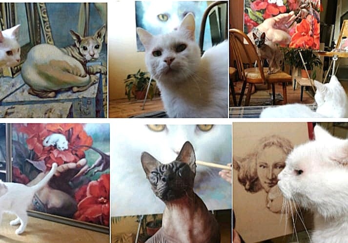 К сожалению, беспрецедентные налёты беспилотников на Сочи 8 августа, во Всемирный день кошек, помешали нам вовремя поместить материал, посвящённый нашему Белому Коту (Кысиусу). В этот замечательный праздник мы с лёгкой грустью вспоминаем его, живого оберега нашей семьи, «белым пушистым комочком» пришедшего незваным в мастерскую и совсем недавно покинувшего наш мир. Вспоминаем с благодарностью за дар озарения, открывшего новый период нашего творчества «Время Белого Кота» и на протяжении 17-ти лет бывшего его идейным вдохновителем и руководителем.