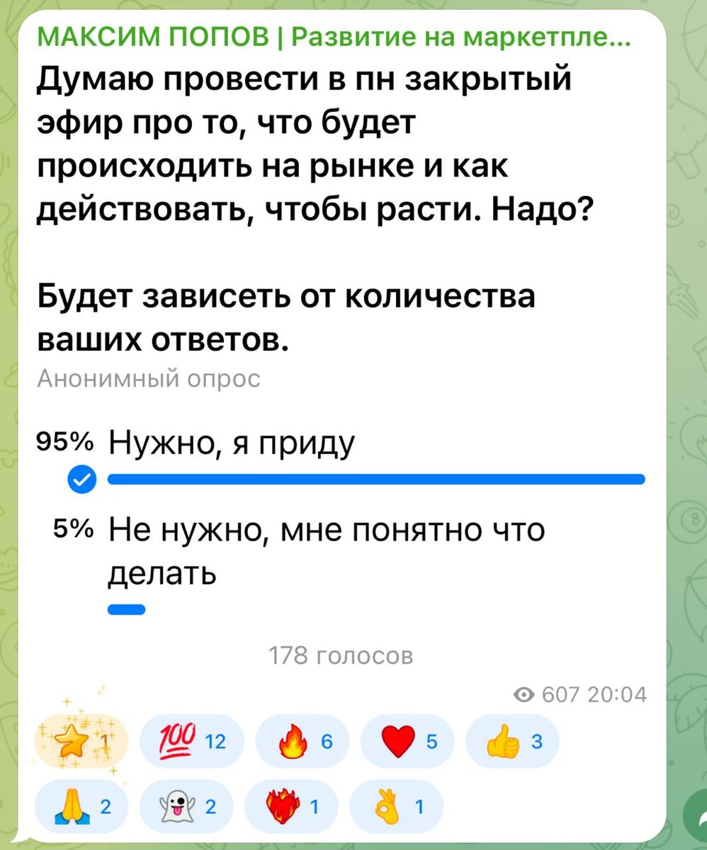 Вижу, что многим нужно. Сказал своим маркетологам, что не хочу выступать на маленькую аудиторию, они сказали что пригласят каждого подписчика кругляшом. Не пугайтесь, переходите в закрытый канал и до встречи в пн в 19:00.