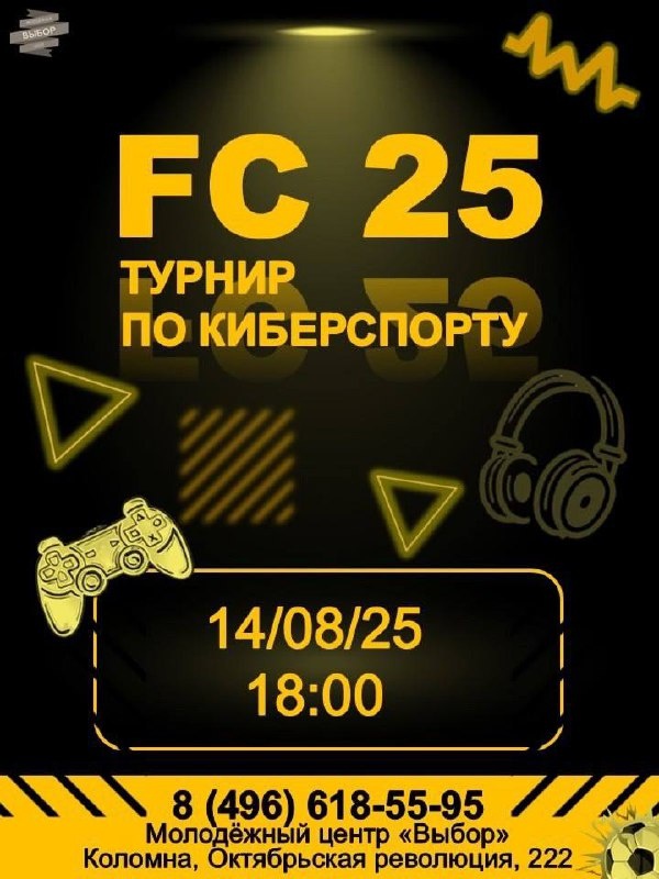 14 августа в Молодёжном центре "Выбор" для молодёжи Коломны состоится турнир по киберспорту FIFA-25