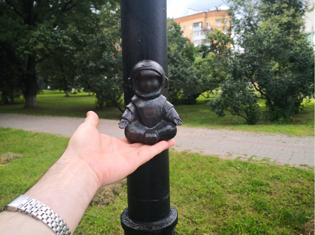 Есть космонавтики которые напоминают историю космонавтики - летчик. Повторять и дублировать я не буду. Если кому-то будет интересно, подробнее можно найти информацию в интернете. Ну а мы сегодня гуляли и к нам подошла девушка и спросила - а вы не знаете где находится "космонавтик" на Площади Мира, где мы немного отдыхали после прогулки.