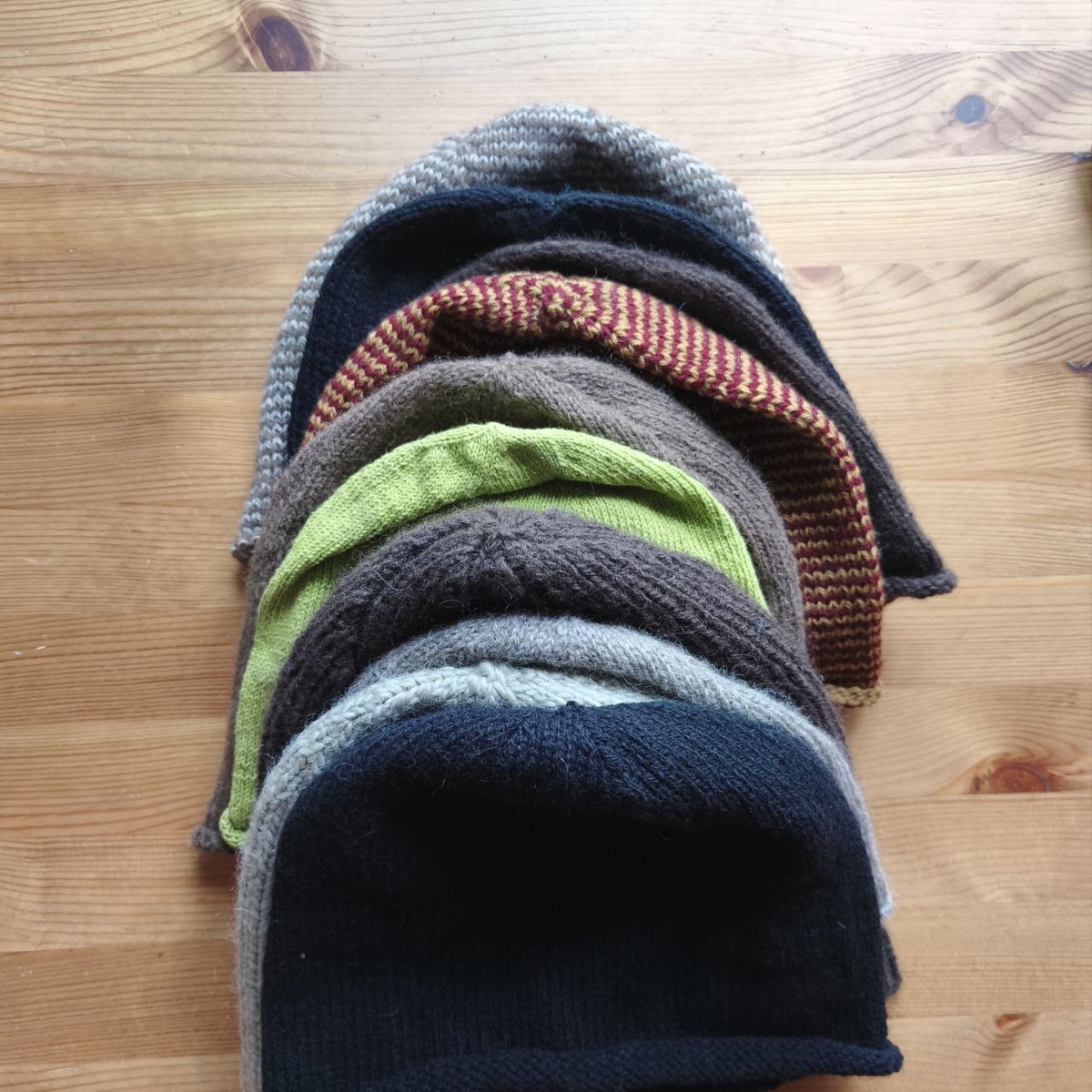 Как-то незаметно для себя навязал уйму простых, но надёжных, теплых, очень комфортных и практичных шапок. Всё благодаря тому, что делал это на природе, вдали от Москвы. Видимо там мне легче сконцентрироваться и я там более продуктивен.