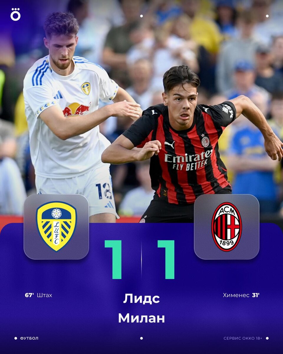 Ничья в товарке «Лидса» и «Милана» 🤝