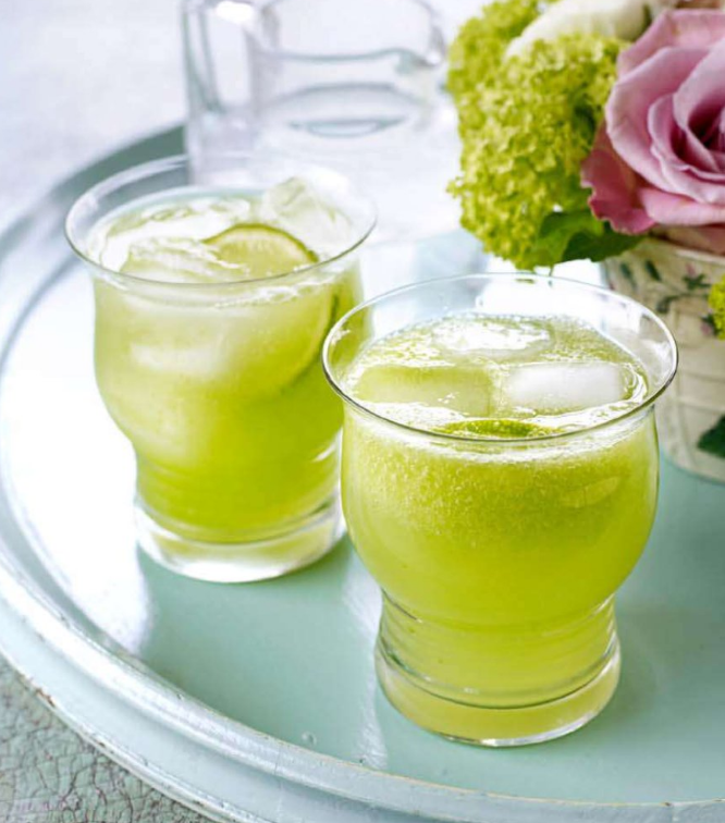 Физз — тип коктейлей, в состав которых входят газированные напитки. 2 порции Измельчите нарезанный огурец в блендере до состояния пюре. Процедите огуречный сок через сито. Положите по три кубика льда и налейте 50 мл джина в каждый стакан. Добавьте немного огуречного сока, залейте тоником и перемешайте. Добавьте несколько ломтиков лайма.