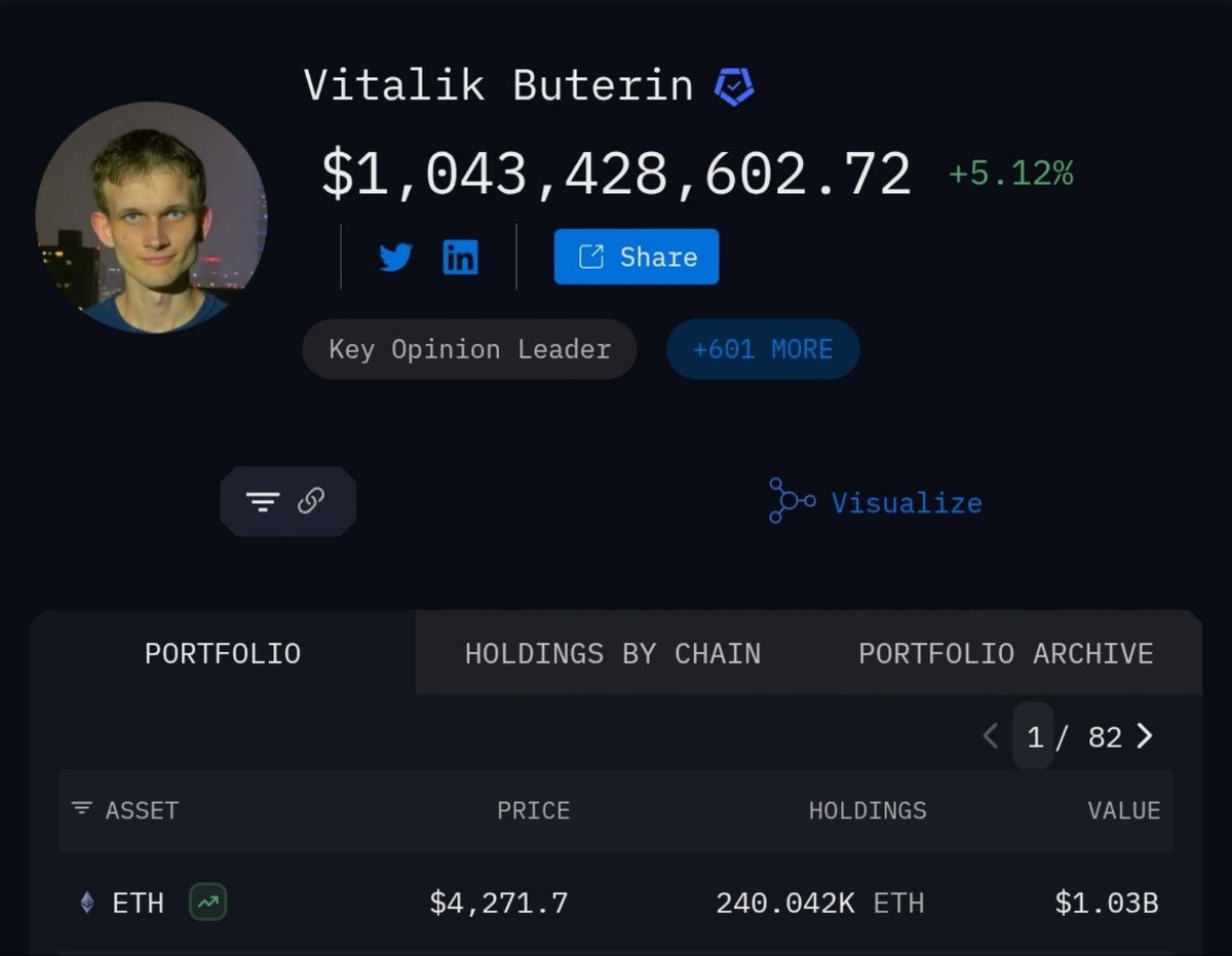 Пока никто не верил в эфир, он уже стоит почти $4300. А тем временем Виталик опять стал миллиардером — на его кошельках хранится 240к ETH на $1млрд.