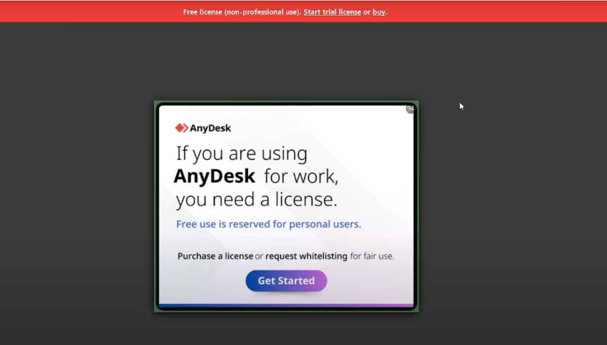 В новых версиях AnyDesk при использовании даже для личных целей может появляться сообщение с предложением купить лицензию и запускаться таймер обратного отсчёта.