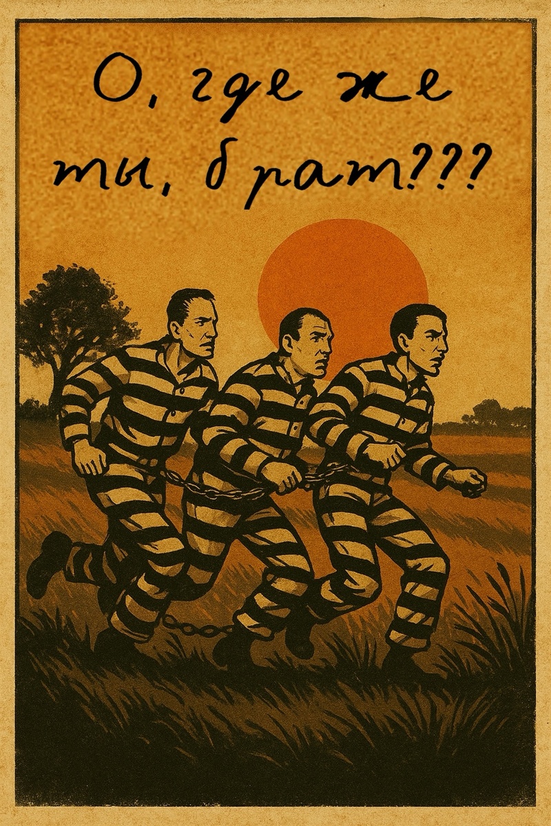 Фильм братьев Коэн «О, где же ты, брат?» (O Brother, Where Art Thou?, 2000) обычно воспринимают как абсурдное приключение трёх беглых заключённых в Америке времён Великой депрессии. Но что, если всё, что мы видим, — это вовсе не реальное путешествие, а загробный путь трёх душ? 📜 Кратко о сюжете В 1930-е годы в штате Миссисипи трое каторжников — красноречивый Юлисс Эверетт Макгилл, наивный Делмар и вспыльчивый Пит — сбегают с цепи заключённых в поисках якобы зарытого сокровища. По дороге они встречают слепого прорицателя, певцов-блюзменов, коварных мошенников, харизматичного политика и даже Ку-Клукс-Клан. Погони, обманы, чудеса и много музыки — всё это перемешано с южным колоритом и юмором 🎶 Интересные особенности 💀 А если они мертвы? Теперь представим: при побеге герои тонут в реке и умирают, либо они умирают от невыносимой каторжной работы, неважно. Вся дальнейшая история — это аллегорическое путешествие их душ через испытания, чтобы очиститься и обрести покой. На эту мысль
