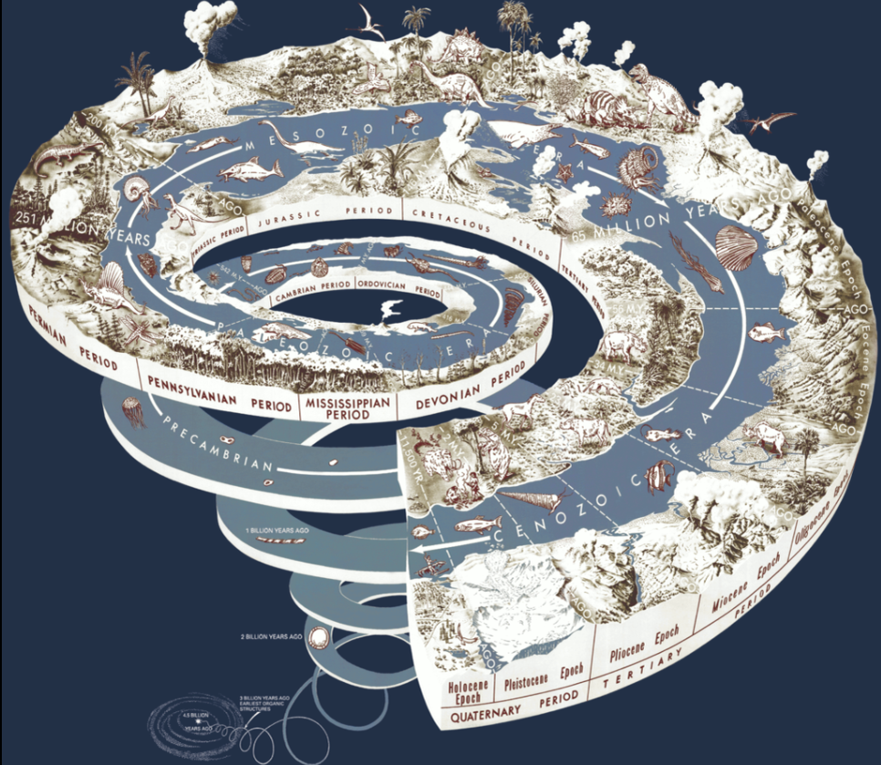 Трудно себе представить такой огромный отрезок времени. Чтобы понять это можно представить себе, что вся земная история длится 12 часов. Тогда докембрий это 10,5 часов, от появления жизни в кембрийском период прошло только 90 минут. Динозавры вымерли 9 минут назад, а вся история человечества развивается на последней секунде.