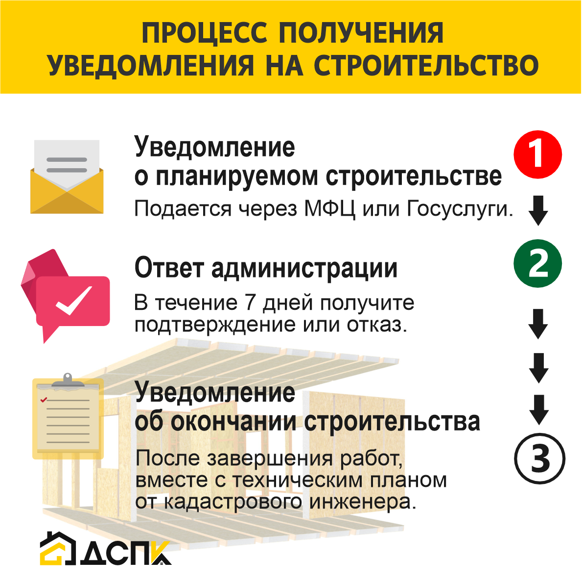 1. Уведомление о планируемом строительстве. Оно подается через МФЦ или Госуслуги.