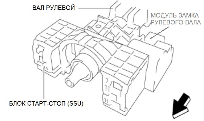 • При обнаружении этого кода неисправности блок SSU переходит в аварийный режим для обеспечения безопасности. Если зажигание выключено (LOCK) по истечении заданного изготовителем времени или автомобиль двигался в аварийном режиме в течение свыше заданного изготовителем времени, зажигание останется выключенным, и ДВИГАТЕЛЬ НЕ ЗАПУСТИТСЯ. Поэтому выполните диагностику неисправности, пока двигатель может быть запущен. Кроме того, после диагностики неисправности убедитесь, что этот код неисправности не обнаружен при заблокированном рулевом колесе. Если код неисправности не обнаружен, система возвращается в нормальный режим работы из аварийного режима. Примечание