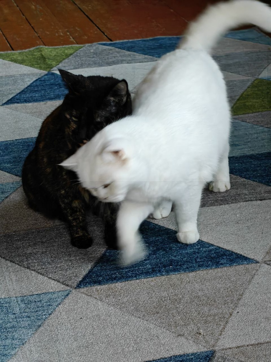 Давно хотела рассказать, что Белый Мишка не один - он очень дружит в Трехцветкой. Они оба большие и пушистые