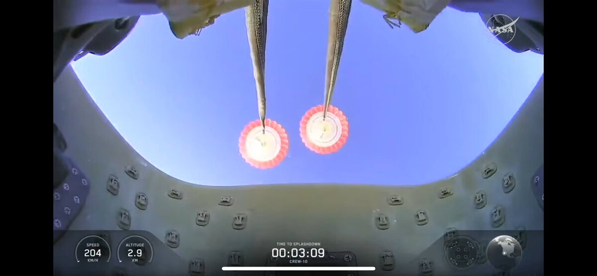 Самое лучшее, что может быть - это ошибка трансляции, которую никто никак не оправдывает: Как написал Дмитрий, в принципе - все штатно работало, но после захода в облака, в трансляции решили поставить то, что уже было раньше, зачем - не понятно. Эти кадры, скорее всего, с вытяжными парашютами. Вытяжные парашюты показаны на данном кадре
