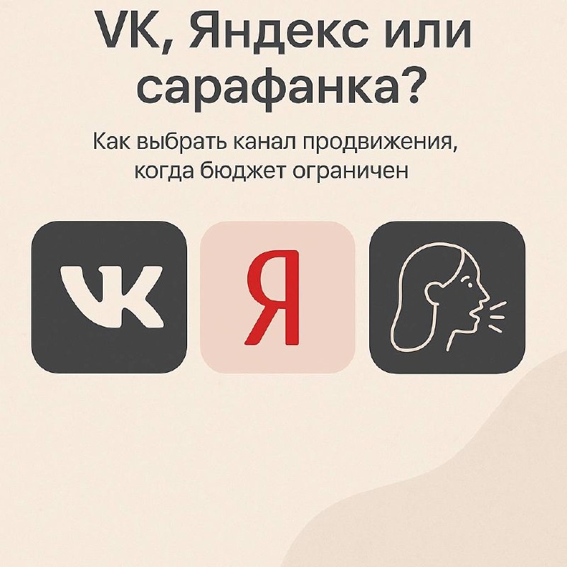 Идеально, когда маркетинг — как оркестр: каждый инструмент играет свою партию, а вместе получается музыка, которая приводит клиентов. Но в реальности, особенно при ограниченном бюджете, часто возникает соблазн «запустить всё и сразу» — и в итоге ни один канал не работает на полную силу. Чтобы избежать хаоса и потерь, важно выбрать один правильный канал под конкретную задачу и довести его до результата. Для старта и быстрого теста гипотез 1. Сарафанка 2.0 Рекомендации клиентов по-прежнему работают, особенно в районах, где мастеров знают лично. Как усилить: «Приведи подругу на процедуру — получи 500 ₽ на следующую услугу». «Дарим мини-уход за репост отзыва в сторис». Плюсы: высокая конверсия, нулевой бюджет, доверие с первой минуты Минусы: поток не прогнозируем, сложно масштабировать, не всегда подходит для премиальных чеков. Когда использовать: в микрорайонах и спальных районах если мастера и администраторы активно общаются с клиентами 2. VK-реклама Если сайта нет — это не проблема.