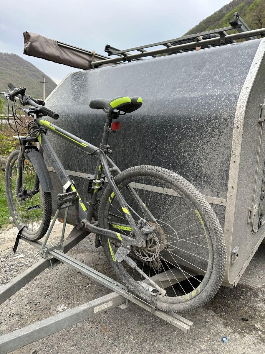 Всем, кто планирует, так же как и я установить вело крепление на дышло обратите внимание, что вся грязь из под колёс тягача будет лететь на