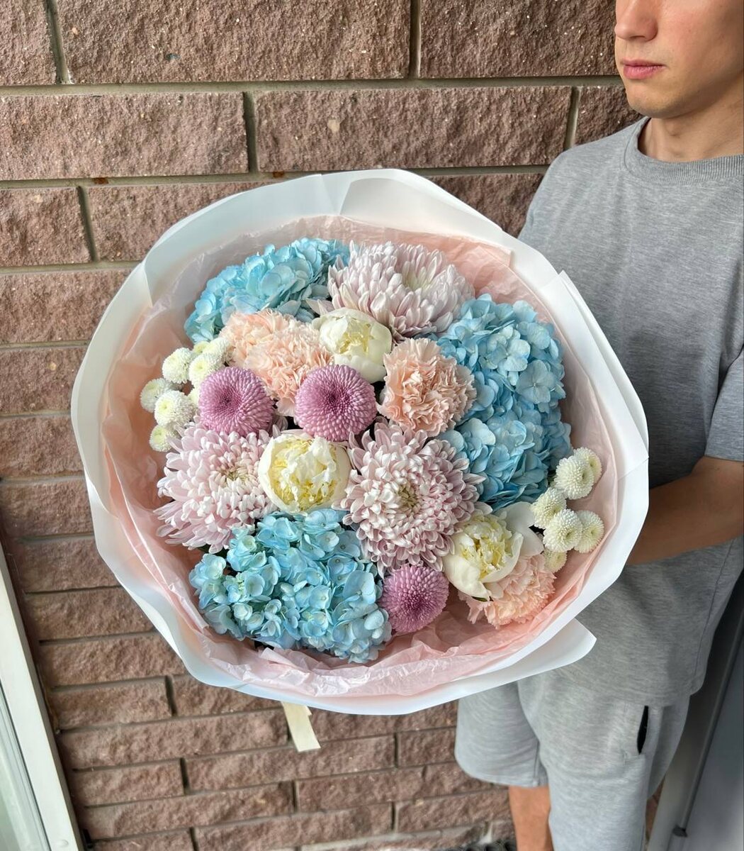Чудесные романтичные гортензии в сочетании с пионами и хризантемами 🥰