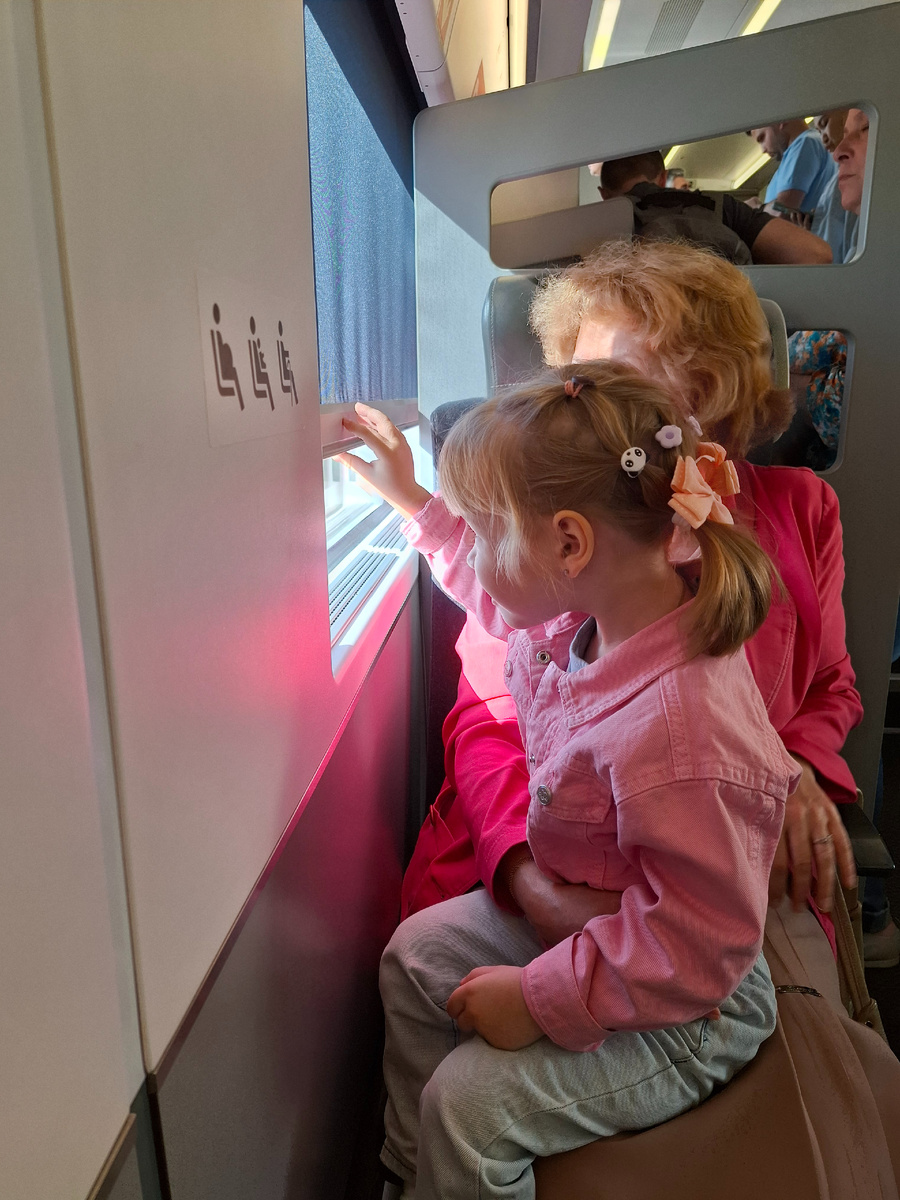 Итак, в пятницу мы с Лерой и свекровью как обычно сели в аэроэкспресс в Одинцово, чтобы через полтора часа выйти в Шереметьево. Свекровь вышла на середине пути, так как у нее были дела. В целом дорога прошла нормально, не считая того, что у Леры с каждой минутой нос закладывало все сильнее. Она с таким сюрпризом уже проснулась. В Шереметьево мы приехали за полтора часа. Так как мы уже были зарегистрированы и багаж сдавать тоже не надо было, я распечатала в автомате посадочный, мы прошли контроль и досмотры, и у Леры было время немного поиграть в игровой зоне, чему она невероятно обрадовалась Потом я ее оттуда вытащила, так как было пора лететь. Лера было возражала "Я хочу играть с ребятками!", но что поделать. Правда в итоге наш рейс перенесли на 20 минут - жаль, что это я узнала когда мы уже заняли очередь на посадку. В самолете все прошло как обычно - немного мультиков, потом мы пообедали, а Лера, которая не завтракала, пообедала с особым аппетитом, ну а потом Лера ненадолго при