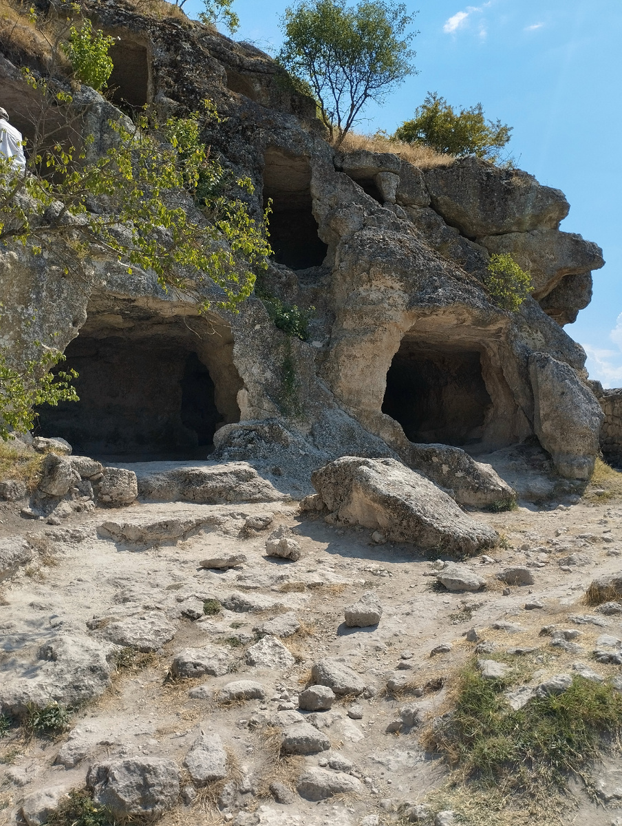 Когда чувства говорят одно, а разум другое, внутри человека происходит разлад. И чтобы вернуть себя в гармоничное состояние, через день мы снова поехали в Чуфут-кале. На этот раз поступили как нормальные люди - выяснили дорогу (она лежит через Староселье) и отправились в путь с утра, пока пещеры ещё открыты для посещения. В этот раз дорогу к Чуфут-кале мы благополучно нашли. И когда мы тащились наверх в дикой жаре, которая только усиливалась, среди толпы неимоверно потных и отдувающихся людей, то у меня внутри всё встало на свои места. Наша сумасбродная поездка накануне была полностью реабилитирована. Там, в нашем вечернем походе было много умиротворения, единения с природой и погружения в наше мы. А тут я чувствовала себя расплавленной солнцем, размазанной по бетону, потерявшейся среди множества людей. Идти полтора километра по туристической трассе оказалось намного тяжелее, чем пять по каменистой дороге для джипов. Впрочем, всё это забылось, когда мы добрались непосредственно