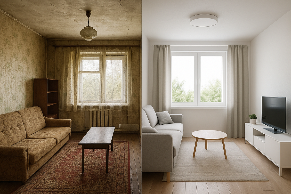 Когда я заехал в свою квартиру, она выглядела так, будто в ней снимали советский фильм… и забыли свернуть декорации. Шкаф, который скрипит при каждом движении, ковёр, переживший больше тусовок, чем я, и люстра, способная убить упавшей лампочкой. Всё это угнетало, но на ремонт денег не было. Поэтому включил смекалку и решил: делаем «апгрейд» по-мужски — быстро, дёшево и так, чтобы не стыдно было позвать кого-то в гости. Время: 3–4 часа