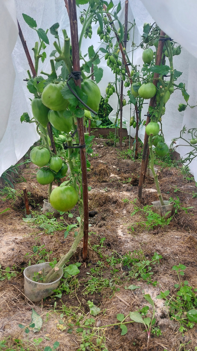 Мечты об отдыхе в День Строителя, которые лелеила с пятницы еще, рухнули. Как истинные строители не сидим на месте. "Строим" площадку для теплицы. И это квест, я вам скажу... При первом замере, вроде, как казалось, что 3 х 4 метра теплица помещается. Но вот площадка расчищена, все пеньки убраны и... понимаю, что не влезает! Не хватает буквально несколько сантиметров. Сейчас вот статью допишу и снова пойдем измерять. Тут ведь тоже надо: семь раз примерь - один отрежь. Теплица приедет уже через неделю. Это была проблемная новость моего сада). Есть и хорошие). Ну, томаты мои пока еще целы. Фитофтора их не тронула пока. И я рискую оставить их еще на неделю под спанбондом с прОдухами. Томатики красивые. Спасибо, Наташа (хозяйка вот этого канала)! Эти томаты - гномы выросли из ёё семян. Те, что успели созреть - удивляют вкусом. Он разный у каждого сорта гномов). И вкусные все). В общем, моя страна зеленых помидоров потихоньку дозревает "на грани фола"). А еще мой чесночок высу