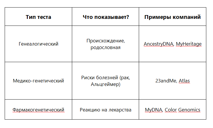 (Время чтения: 15 минут) Традиционная медицина долгое время работала по принципу «один препарат для всех», но люди реагируют на лечение по-разному. Например, 40% пациентов с депрессией не получают эффекта от первого назначенного антидепрессанта, а 30% больных гипертонией не реагируют на стандартные таблетки. Персонализированная медицина — это революционный подход, основанный на генетике, биомаркерах и big data, который позволяет: ✅ Предсказывать болезни до появления симптомов ✅ Подбирать лекарства с учетом ДНК ✅ Снижать риск осложнений 1.1. Типы ДНК-тестов 🔬 Реальный случай: У женщины с семейной историей рака груди тест выявил мутацию в гене BRCA1. Это позволило начать превентивное наблюдение и снизить риск на 80%. 1.2. Как работает секвенирование генома? 1. Забор слюны/крови → выделение ДНК. 2. Секвенирование (расшифровка 3 млрд «букв» генома). 3. Анализ → сравнение с базами данных (например, ClinVar). ⚠️ Ограничения: - Не все гены изучены (известно лишь ~5% мутаций). - Риск ≠ приго