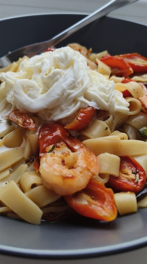 Паста с баклажанами, креветками и страчателлой. Как я устроила итальянский хаос на своей кухне