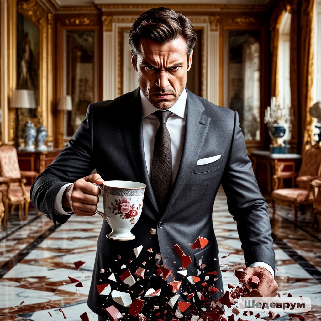 Он отшвырнул кофейную чашку, которая разбилась о мраморный пол.
