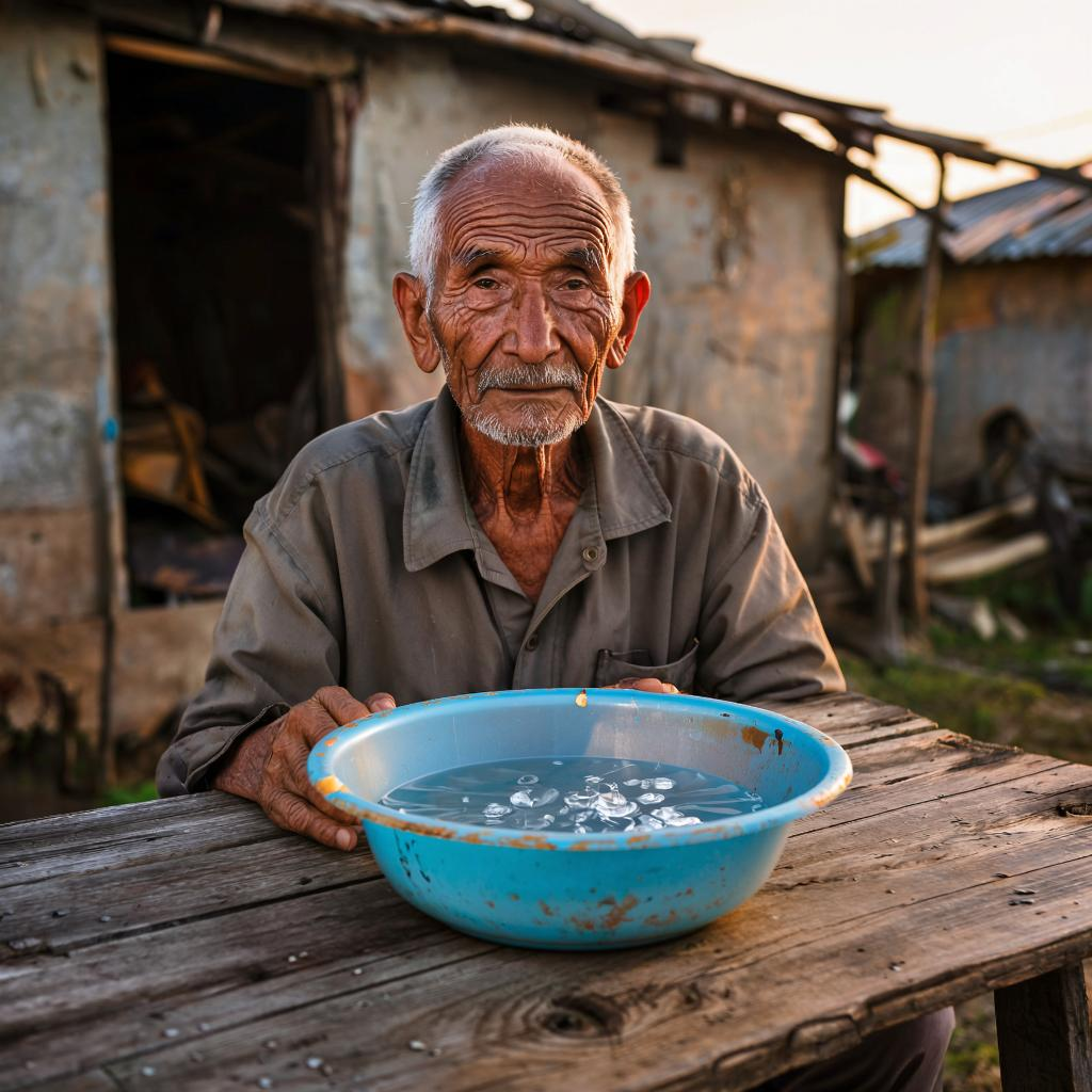 Солнце уползало за сосны, цепляясь иголками за занавеску. Старик сидел за кухонным столом. Тени от веток ползли по полу, как чёрные кошки, лизали щербатые половицы, добирались до его стоптанных тапок. Он не шевелился. Перед ним стояла миска. Синяя, пластмассовая, с облезлым ободком — будто кто-то грыз края. Старик взял кувшин. Вода хлюпнула, тяжелая, пахнущая железом и глубинным холодом колодца. Он налил до краёв. Поставил на пол у ножки стула — туда, где всегда ждала тёплая шерсть. На гвозде у двери болтался ошейник. Кожаный, потёртый до бархата, с пряжкой, которую некогда блестела, как монета. Старик снял его. Ладони запомнили тяжесть — точный вес собачьей шеи, тепло, впитанное кожей за десять лет. Положил рядом с кружкой. В кружке мутнел холодный чай. Он не пил его три дня. Взгляд упал в угол. Там лежал коврик — вытертый до ниток посередине. Место, где тело прожгло дыру терпением и верностью. Старик ждал. Ждал привычных звуков: Только часы стучали на стене. Тик-так. Между ударами в