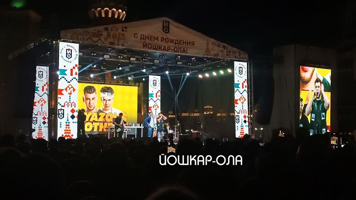 Хиты «Малиновая лада», «Фаина», «Пошла жара», «Раньше была как лёд, она танцует и поет» звучали сегодня на Патриаршей площади Йошкар-Олы, завершая насыщенный, фееричный и полный эмоций День города Группа Gayazovs Brothers раскачала Йошкар-Олу и на только – зрители приехали послушать братьев Гаязовых из Кирова, Чебоксар, Самары и даже из Москвы! Кстати, любимцы публики уже не в первый раз в Йошкар-Оле. Как они рассказали со сцены, в детстве они приезжали к нам из родной Казани.