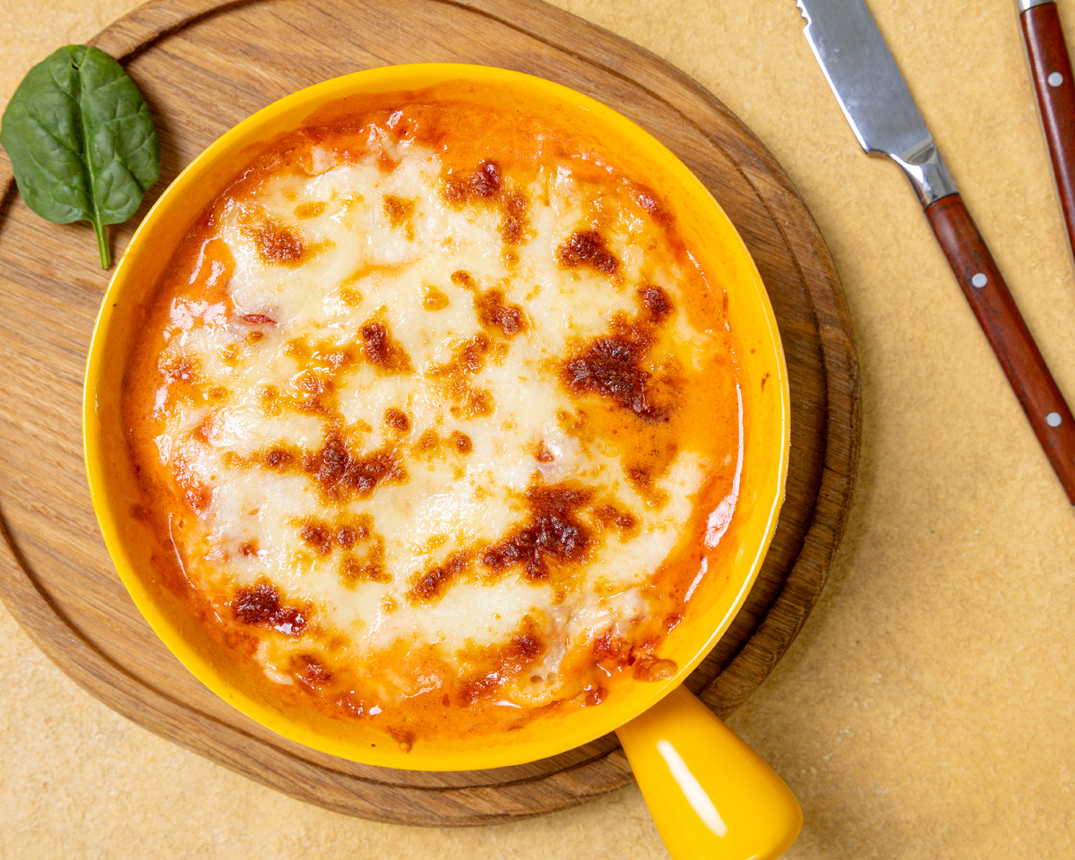 Нежные трубочки из тонкого домашнего теста, щедро начинённые сливочной рикоттой со свежим шпинатом, в мягком, чуть сладковатом томатно-сливочном соусе. Всё это запекается под золотистой шапкой моцареллы.