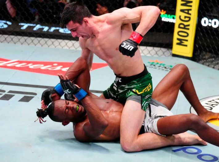 На проходящем сейчас в Лас-Вегасе турнире UFC Vegas 109 десятый номер рейтинга UFC в наилегчайшем весе Стив Эрцег одержал победу над Оде Осборном. Оде Осборн явно превосходил соперника в стойке и в первом раунде сумел сильно потрясти Эрцега, однако тот сумел зацепиться за его ногу и в итоге оформить перевод в партер, где угрожал удушающим приемом. Второй раунд и первая половина третьего не были особо богаты событиями: Осборн чуть чаще и чуть точнее атаковал в стойке, Эрцег периодически пытался проводить тейкдауны, не добиваясь успеха. Однако во второй половине финальной пятиминутки Эрцег все же сумел затянуть Осборна в борьбу, где владел явным преимуществом, угрожал удушающим и закончил бой, нанося удары в позиции сверху. По итогам трех раундов все судьи отдали победу с одинаковым счетом 29–28 Стиву Эрцегу, который, таким образом, сумел прервать серию из трех поражений.
