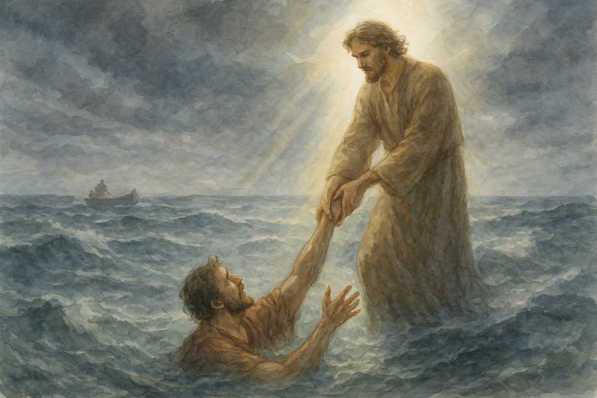 Друзья, представьте человека, который, не умея плавать, сорвался в бурную реку. Он захлебывается, бьется в панике, силы на исходе. Что сделает настоящий спасатель? Он не станет с берега кричать: «Я же предупреждал не подходить близко! Видишь, что бывает?» Он бросится в воду, протянет руку, вытащит на твердую землю. И лишь потом, когда человек отдышится, дрожа от холода и пережитого ужаса, скажет, быть может: «Друг, впредь будь осторожнее у воды». Сегодняшнее Евангелие (Мф. 14:22-34) – это как раз история о таком Спасателе. Господь Иисус Христос идет по бушующему морю к лодке учеников. Петр, горячий и порывистый, просит: «Господи! если это Ты, повели мне прийти к Тебе по воде». Христос зовет его. Петр делает несколько шагов... и вдруг видит яростные волны, слышит вой ветра. Страх побеждает веру. Он начинает тонуть, крича: «Господи! спаси меня!» И здесь – ключевой момент для каждого из нас. Что делает Христос? Он сейчас же протягивает руку и поднимает утопающего Петра. Только после этого