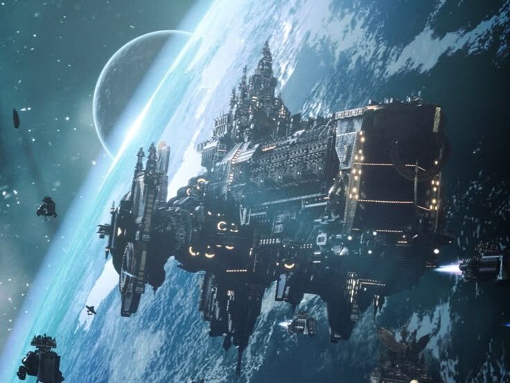 В сеттинге **Warhammer 40,000 (Warhammer 40K)** космические корабли играют **огромную роль** как в лоре (истории вселенной), так и в различных играх. Это не просто транспорт, а гигантские плавучие крепости, символы мощи фракций и арены для эпических сражений. Вот ключевые аспекты: **1. Настольная Игра: Battlefleet Gothic (BFG)** * **Специализированная игра:** Это *основная* настольная игра, посвященная именно космическим сражениям в Warhammer 40K. Игроки командовали флотами, состоящими из крейсеров, линкоров, эсминцев, фрегатов и т.д. * **Глубина тактики:** Учитывались дальность орудий, типы вооружения (макро-пушки, лансеры, торпеды, запуск истребителей и бомбардировщиков), броня, щиты, маневренность, особые приказы (абордаж, "все вперед!"). * **Модели:** Выпускались прекрасные детализированные модели кораблей разных фракций. Сейчас игра не поддерживается официально GW, но имеет культовый статус и активное сообщество фанатов, играющих по старым или переработанным правилам (наприме