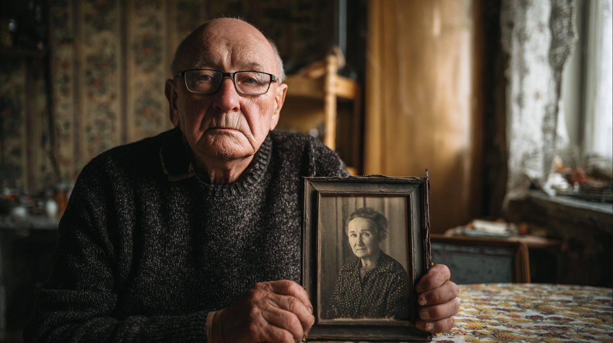 Квартира скромная, однокомнатная. На стене — фотография мамы.