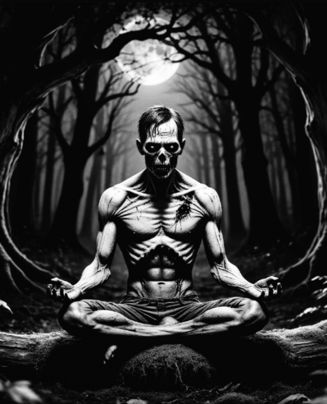 Стоял ничем не примечательный январский вечер. От скуки клонило в сон. Авдей нырнул под одеяло. По привычке закрыв глаза, он принялся медитировать, но вскоре провалился в дрëму. Посреди ночи разбудил сонный паралич. Скованное тело не реагировало на импульсы, что отчаянно посылал мозг. Взгляд хаотично рыскал в полумраке спальни, пытаясь зацепиться за причину ночных страхов. Тусклый ночник, словно в нелепых кошмарах, не мог осветить комнату и лишь искажал очертания предметов. Потоки фотонов утопали в осязаемой и неестественной мгле. Казалось, ещё миг, и тёмная масса разольётся по полу, забьётся в горло, уши, ноздри, а тело так и останется неподвижным. Цифры на электронных часах исказились, вырисовывая бессмысленные иероглифы.
