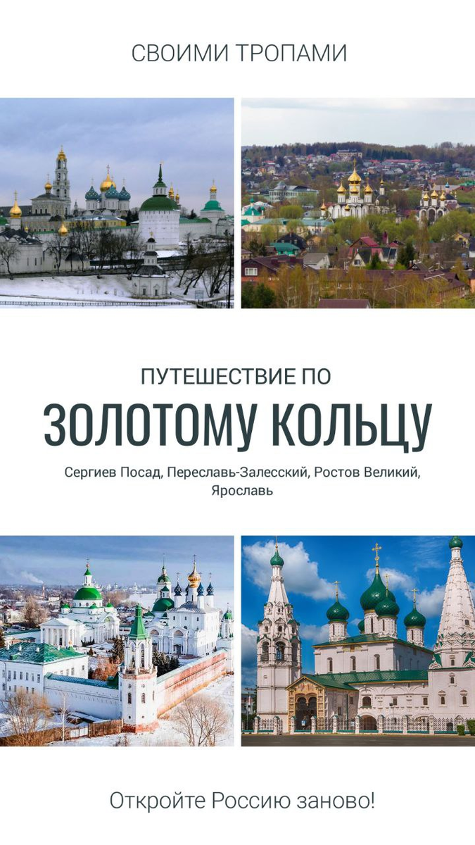 Золотое кольцо — это уникальный маршрут по древним городам России, где каждая улица, храм и дом дышат историей и культурой. Этот путь погружает в атмосферу настоящей русской души — от величественных кремлей и церквей с золотыми куполами до колоритных народных традиций и уютных улочек. Путешествие по Золотому кольцу — отличная возможность прикоснуться к истокам русской цивилизации, увидеть шедевры архитектуры, насладиться живописной природой и попробовать настоящую русскую кухню.