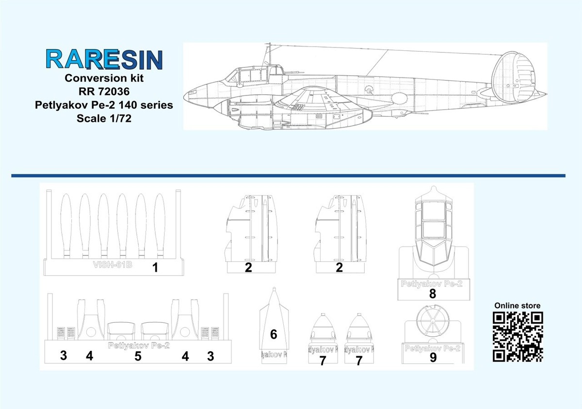 Prop&Jet из Нальчика показала инструкцию своего готовящегося к выходу в серии Raresin конверсионного набора из полиуретановой смолы для модели Пе-2 в масштабе 1/72 от "Звезды".